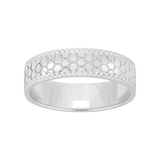 9 Karat Weißgoldring Argyor-MRM 5 mm (9)9K288G50, lasergravierte Sechsecke. Allianz aus 9 Karat 375/000 (9 K) Weißgold. Größen 08 bis 30. Lasergraviertes Sechseck-Design. Maße: 5 mm. Echtheitszertifikat und Qualitätssicherung der Herstellungsmaterialien. Art.-Nr. (9)9K288G50