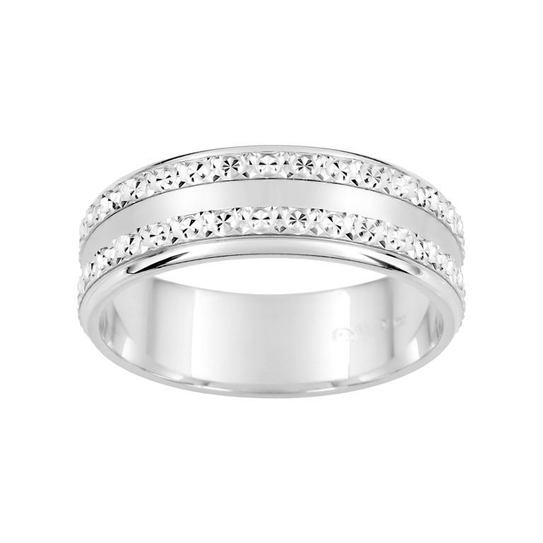 9 Karat Weißgoldring Argyor-MRM 6 mm (9)9K189G60 Diamant-Fantasie. Allianz aus 9 Karat 375/000 (9 K) Weißgold. Größen 08 bis 33. Diamond Fantasy Design. Maße: 6 mm. Gewicht 1,38 g. - 2,01 g. Echtheitszertifikat und Qualitätssicherung der Herstellungsmaterialien. Art.-Nr. (9)9K189G60