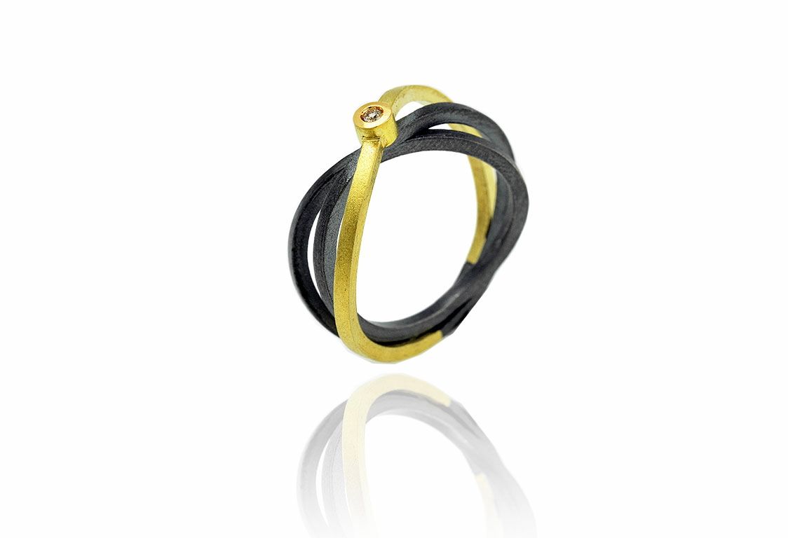 Anillo Plata Y Oro 18kts Arior Concentrico Con Hilo Dorado Con Diamante 3680625XU