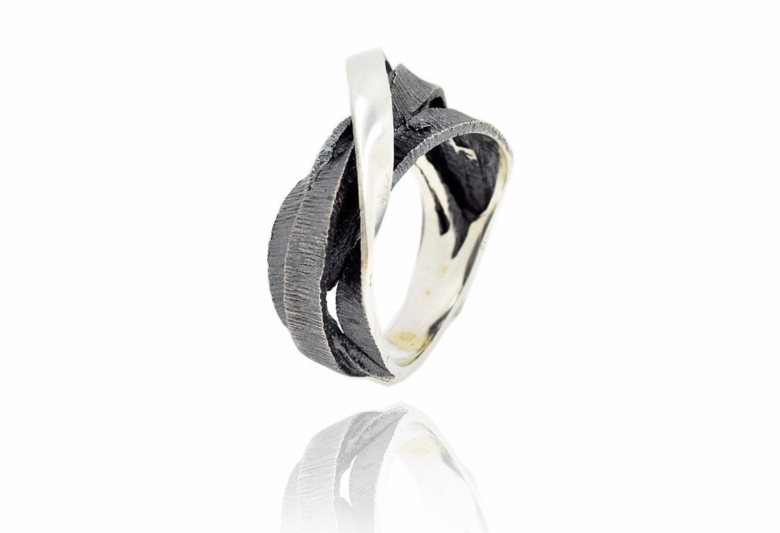 Anillo Plata Bicolor Negro Arior Moebius 3 Hilos + Hilo Pulido 1182885XU