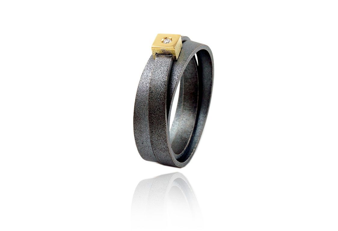 Anillo Plata Y Oro Arior Lux Negro Con Diamante 3680969XU