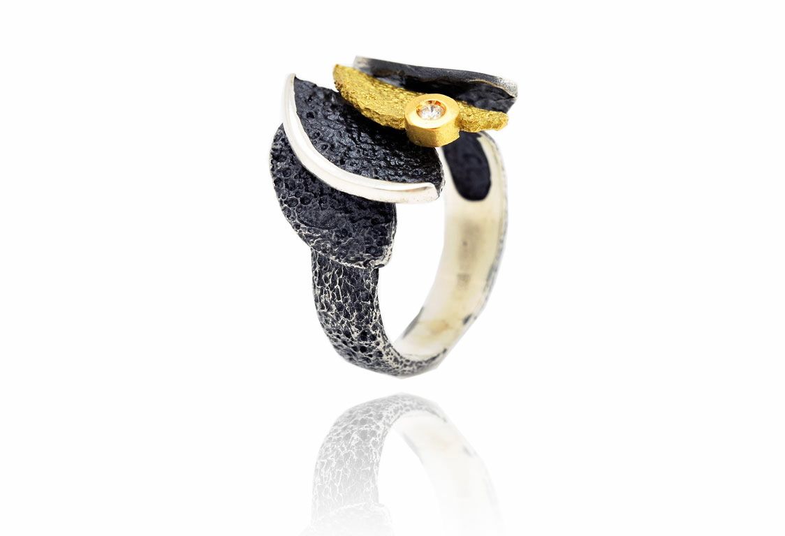 Anillo Plata Y Oro Arior Smile Negro Con Diamante 3680913XU