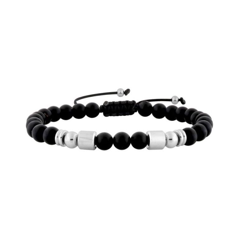 Argyor-MRM (AC)403372 Armband aus goldenem Stahl mit Makramee aus schwarzen Steinen. Armband aus goldenem Stahl. Makramee-Design aus schwarzem Stein. Makramee-Verschluss. Echtheitszertifikat und Qualitätssicherung der Herstellungsmaterialien. Art.-Nr. (AC)403372