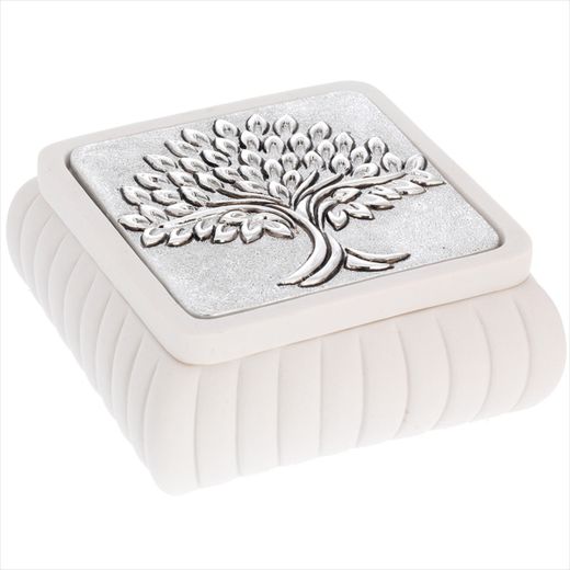 Caja Cuadrada 11x11x4.5cm 2160-02G Tapa Detalle Árbol Espiga