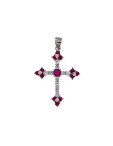Colgante Plata Mujer PCRZ29/R Cruz Circonitas Blancas Bicolor Rosadas