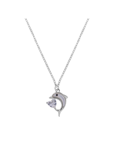 Colgante Plata Mujer PGAR896 Delfín Corazón Circonita