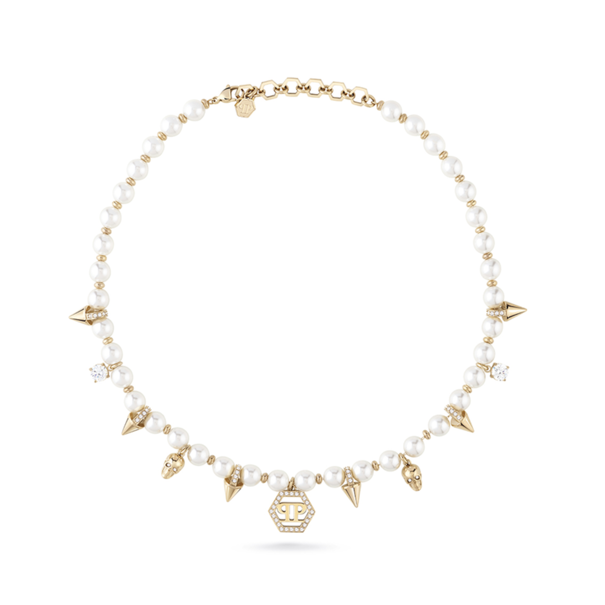 Collar Acero Dorado Mujer Philipp Plein PJ8EA06NU Perlas Calaveras-Tachuelas