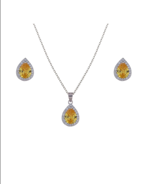 Conjunto Plata Mujer PJUE342/C Circonita Gota Dorada Bicolor Blancas
