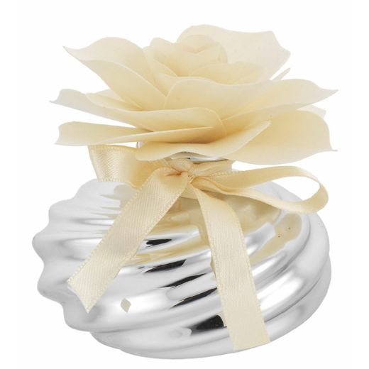 Difusor 8x8cm 2216-01AV Plateada Detalle Floral Beige
