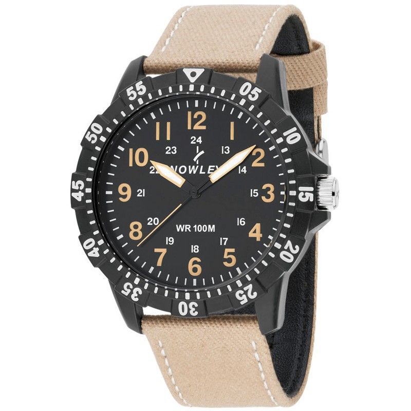 Nowley Herrenuhr 8-0027-0-1 Beige Leder. 45-mm-Polycarbonat-Box. Beigefarbenes Lederarmband. Schwarze Lünette. Schwarzes Zifferblatt und weiße Zeiger. Quarz. Tauchfähig 100 m. 3 Jahre Garantie. Ref. 8-0027-0-1