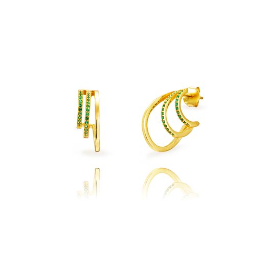 Pendientes Plata Dorada 16mm PEZ1693DOZV Triple Banda Circonitas verdes
