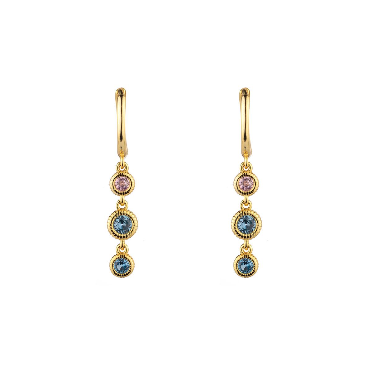 Pendientes Plata Dorada 18x12mm PEZ1544DOVA Colgante Circonitas Multicolor