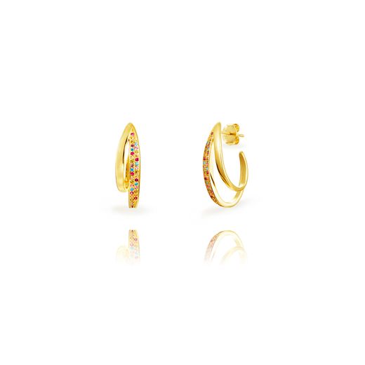 Pendientes Plata Dorada 25mm PEZ1691DOVA Doble Banda Circonitas Multicolor