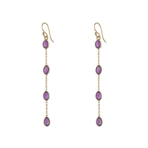 Pendientes Plata Dorada 70mm PEM0340DOAM Colgante Minerales Amatista