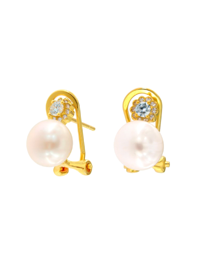 Pendientes Plata Dorada Mujer PPOM39/C Perla Circonitas. Pendientes fabricados en plata dorada de ley 925. Diseño de perla con circonitas. Cierre omega. Certificado de autenticidad y garantía de calidad en los materiales de fabricación. Ref PPOM39/C