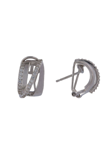 Pendientes Plata Mujer PPOM30 Bandas Cruzadas Circonitas. Pendientes fabricados en plata de ley 925. Diseño de bandas cruzadas con circonitas. Cierre omega. Certificado de autenticidad y garantía de calidad en los materiales de fabricación. Ref PPOM30