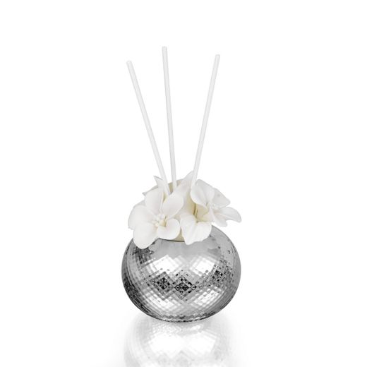 Perfumador Porcelana 10x10cm 5569/166 Plateada Detalles Florales Blanco
