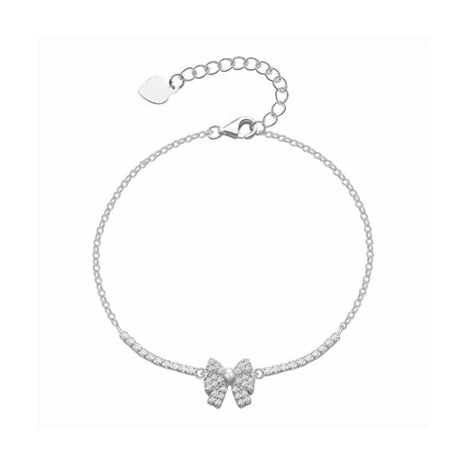 Pulsera Plata B22166 Lazo Con Circonitas. Pulsera fabricada en plata de ley 925. Cierre mosquetón. Colgante diseńo de lazo con circonitas. Certificado de autenticidad y garantía de calidad en los materiales de fabricación. Ref B22166