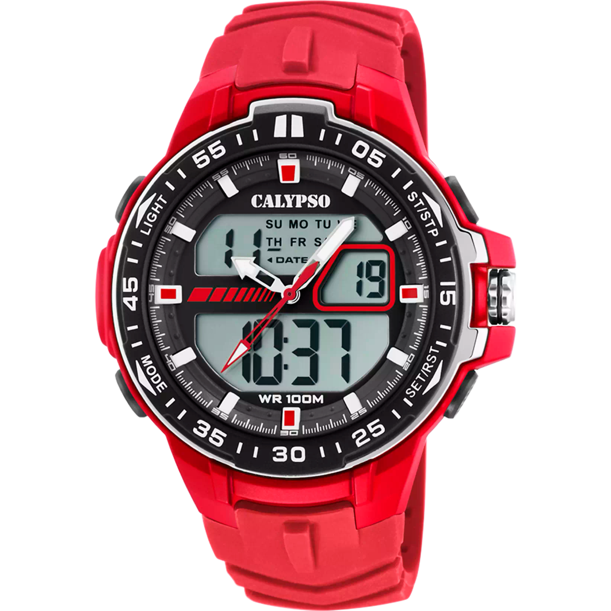 Reloj Calypso Hombre K5766/1 Sport Azul Analógico-Digital. Caja de plástico azul de 53mm de diámetro. Bisel azul bicolor plateado. Correa de plástico azul. Cierre de hebilla de acero inoxidable. Esfera analógica-digital con borde azul. Multifunción, funciones digitales. Cristal mineral. Movimiento quartz. Sumergible 100m. Peso 64,56g. 3 ańos de garantía. Ref K5766/1