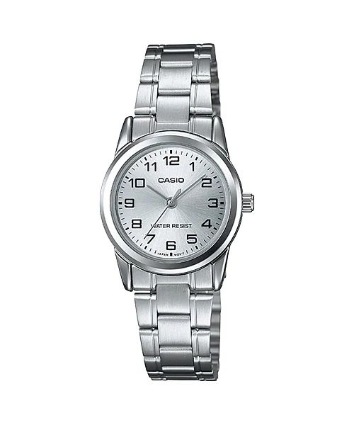 Reloj Casio Mujer LTP-V001D-7B Acero Analógico. Caja de acero de 30mm de diámetro. Bisel plateado. Brazalete de acero plateado. Cierre desplegable. Esfera plateada. Cristal mineral. Movimiento quartz. Resistente al agua. 3 años de garantía. Ref LTP-V001D-7B