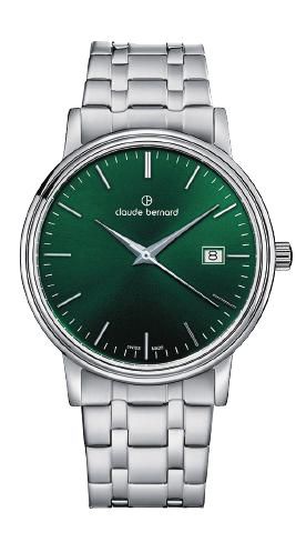 Reloj Claude Bernard Hombre 53007 3M VIN Swiss Made Acero Analógico. Caja de acero de 42mm de diámetro. Bisel plateado. Brazalete de acero inoxidable. Cierre desplegable. Esfera verde. Multifunción, calendario. Cristal zafiro. Movimiento quartz. Swiss made. Peso 105gr. Sumergible 30m. 3 años de garantía. Ref 53007 3M VIN
