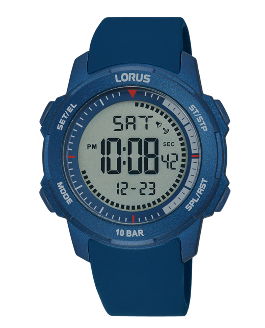 Reloj Lorus Hombre R2373PX9 Sport Azul Digital. Caja de plastico azul de 36mm. Correa de silicon azul. Cierre hebilla. Esfera azul. Multifunción, calendario, cronómetro, luz y alarma. Cristal mineral. Movimiento quartz. Sumergible 100m. 3 ańos de garantía. Ref R2373PX9