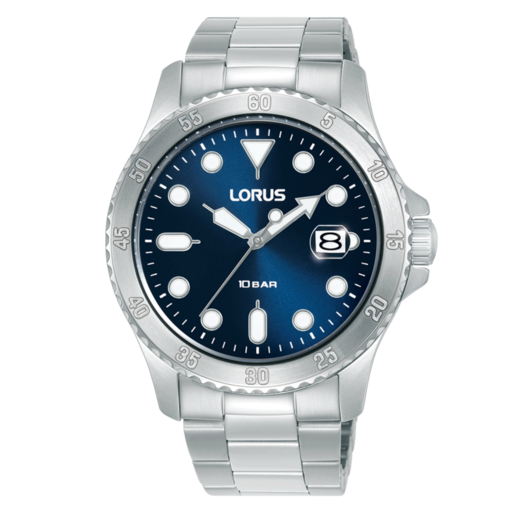 Reloj Lorus Hombre RS967DX9 Acero Analógico. Caja de acero de 42mm de diámetro. Bisel plateado. Brazalete de acero inoxidable. Cierre desplegable. Esfera azul. Multifunción, calendario. Cristal mineral. Movimiento quartz. Sumergible 100m. 3 años de garantía. Ref RS967DX9
