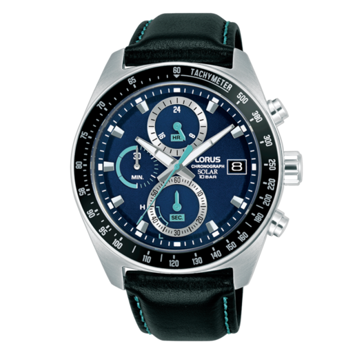 Reloj Lorus Hombre RZ623AX9 Piel Negra Cronógrafo Acero Solar. Caja de acero de 43mm de diámetro. Bisel negro. Correa de piel negra. Cierre hebilla. Esfera azul. Multifunción, cronógrafo y calendario. Cristal mineral. Movimiento solar VR43. Sumergible 100m. 3 años de garantía. Ref RZ623AX9