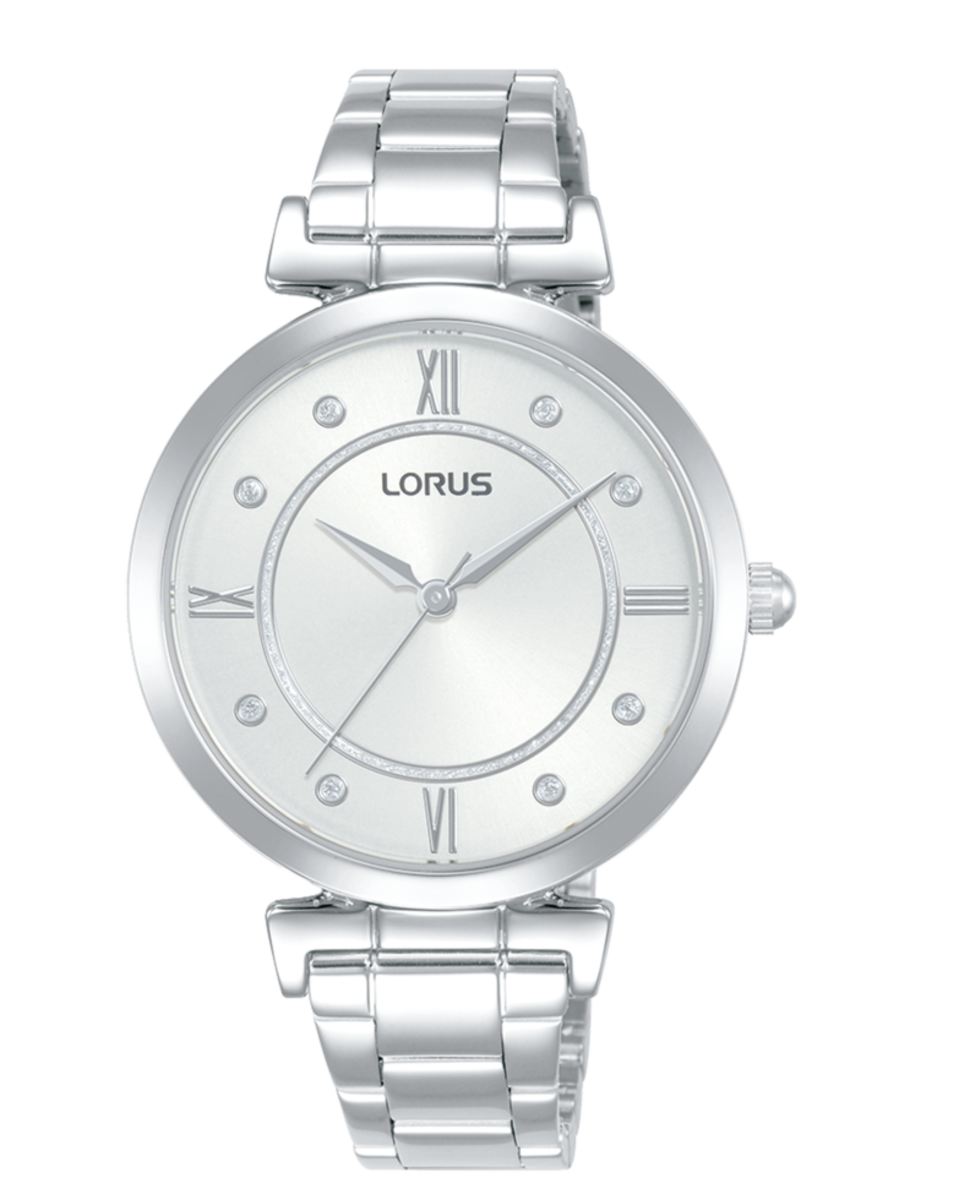 Reloj Lorus Mujer RG293VX9 Acero. Caja de acero de 34mm. Brazalete de acero. Cierre desplegable. Esfera plateada. Cristal mineral. Movimiento quartz. Sumergible 50m. 3 ańos de garantía. Ref RG293VX9