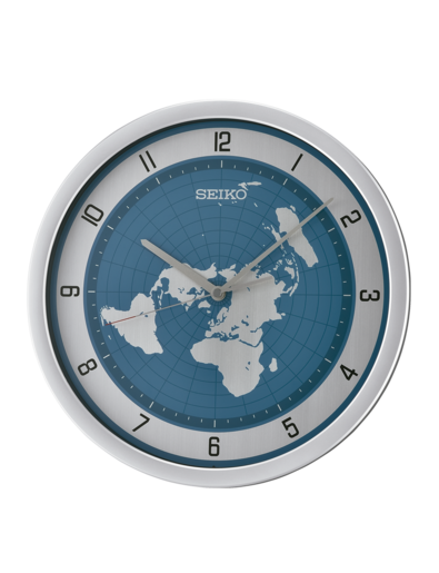 Reloj Seiko Clock De Pared QXA814S Plástico Plateado Mapa Mundi. Reloj de pared. Caja de plástico plateado de 3,9cm x 36,1cm x 36,1cm. Diseño de mapa mundi. Esfera azul. Cristal mineral. Movimiento analógico. 3 años de garantía. Ref EQXA814S