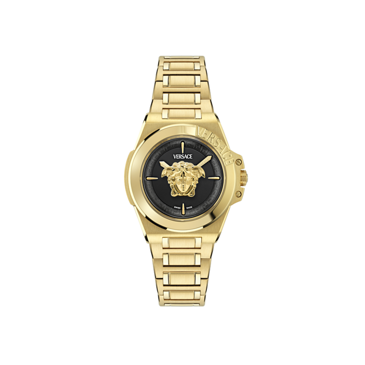 Reloj Versace Mujer VE8D00624 Dorado Hera. Caja de Acero Dorado de 37mm. Brazalete de Acero Dorado. Cierre desplegable. Esfera negra con medusa dorada. Cristal zafiro. Movimiento quartz Suizo. Sumergible 50m. 3 ańos de garantía. Ref VE8D00624