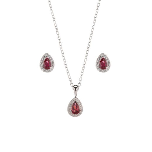 Set Colgante - Pendientes Plata 9mm SEC0003RHZR Circonita Roja Lágrima